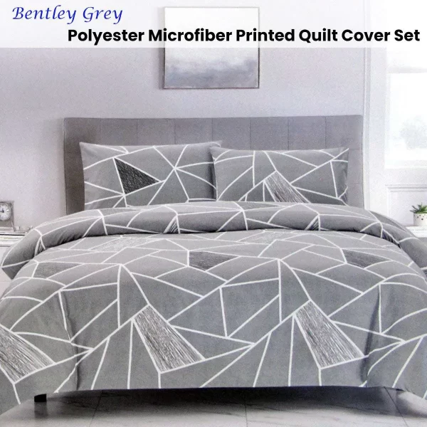 Artex Bentley Grey Quilt Cover Set Geometric Pattern Reversible Printed Microfiber Polyester Queen