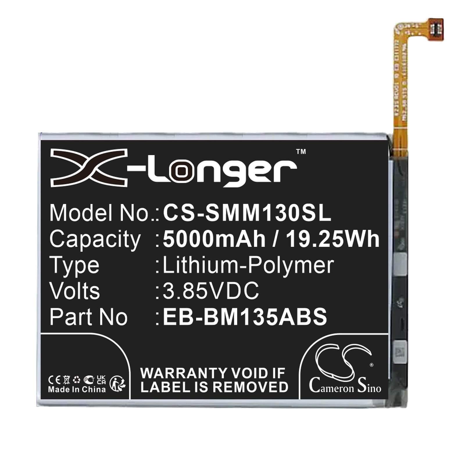 Unlock uninterrupted performance with the Cameron Sino CS-SMM130SL replacement battery, designed specifically for Samsung SmartPhone. This high-quality 5000mAh / 19.4Wh Li-Polymer battery delivers a reliable 3.88V voltage with an energy rating of 19.4Wh, ensuring your device operates at peak efficiency throughout extended sessions. Whatever you are doing this battery provides the power and reliability you need.