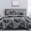 The Artex Bentley Grey Quilt Cover Set Geometric Pattern Reversible Printed Microfiber Polyester adds a modern touch to any bedroom with its sleek geometric design. Made from soft and durable polyester fabric, it ensures comfort and easy maintenance. The white, grey, and charcoal tones combined with sharp, angular patterns give the set a contemporary edge, making it a great choice for minimalist or modern decor themes. Approx 90gsm polyester fabric, zipper closure.