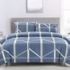 The Artex Harold Blue Quilt Cover Set Geometric Pattern Reversible Printed Microfiber Polyester offers a modern geometric design with intersecting white lines on a soothing blue backdrop. Made from soft polyester fabric, it provides both comfort and durability, making it a perfect choice for a stylish and cosy bedroom upgrade. Approx 90gsm polyester fabric, zipper closure.