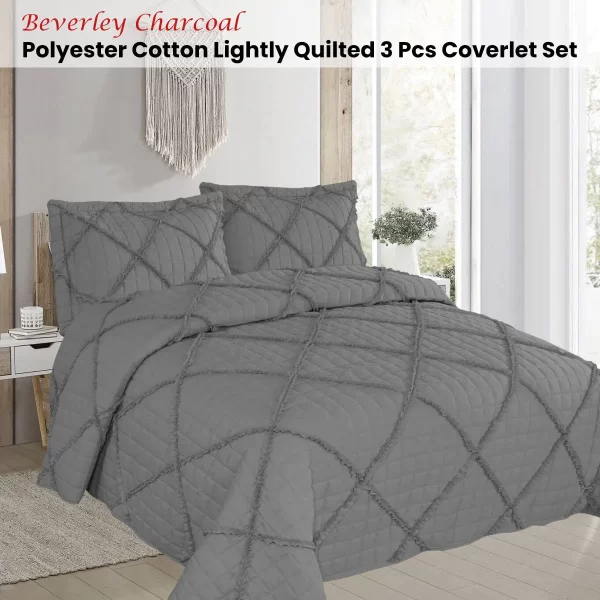 Beverley Taupe 3 Pce Lightly Quilted Polyester Cotton Coverlet Set Queen