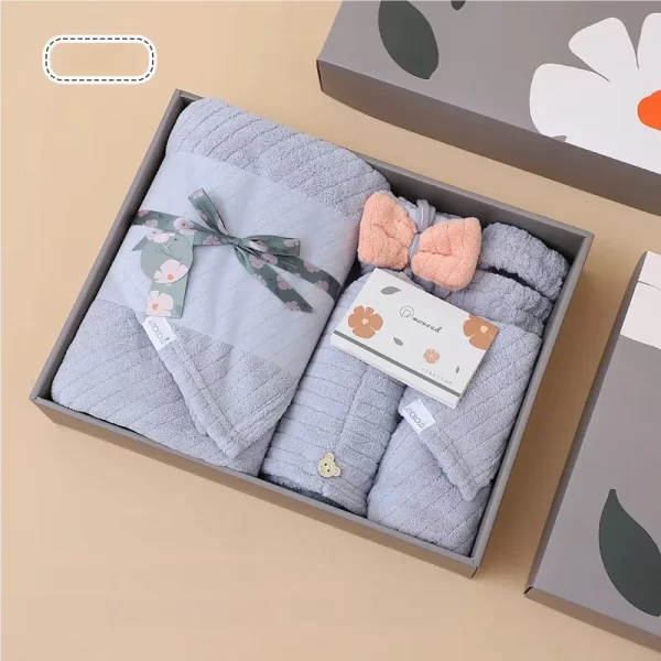 Blue Soft Coral Fleece Towel and Bath Towel Gift Set – 5-Piece Luxurious Absorbent Set