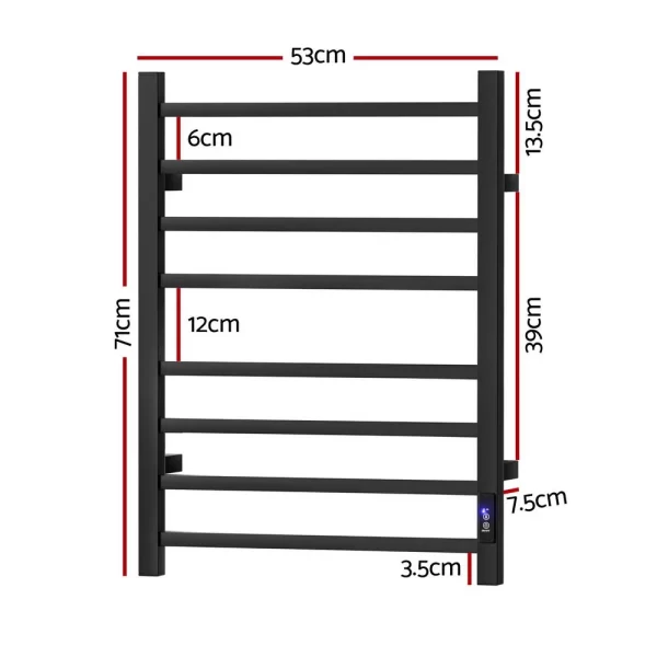 Devanti Heated Towel Rail 8 Square Bars with Timer Electric Heater Warmer Rack