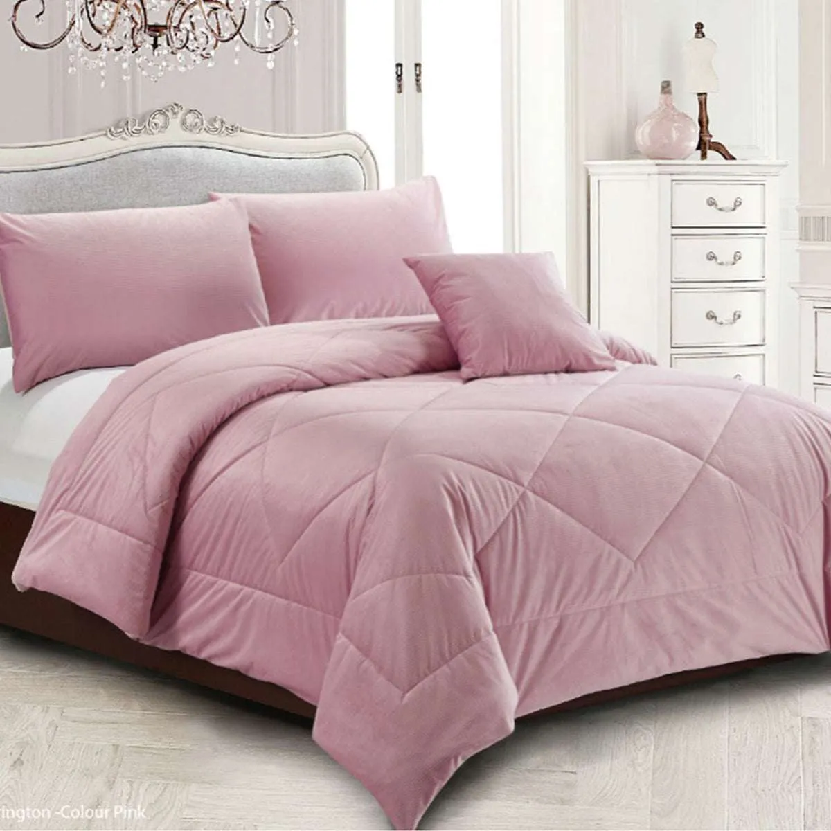 The luxurious comfort and quality of this Carrington Pink Quilt / Comforter Set by Georges Fine Linens will make you have a better and quality sleep. It features a beautify diamond quilted pattern in soft colour tone that will create a smooth and contemporary bedroom look. It is made from soft to the touch and quality Polyester fabric and Polyester filling for a luxurious feeling you will enjoy for years.