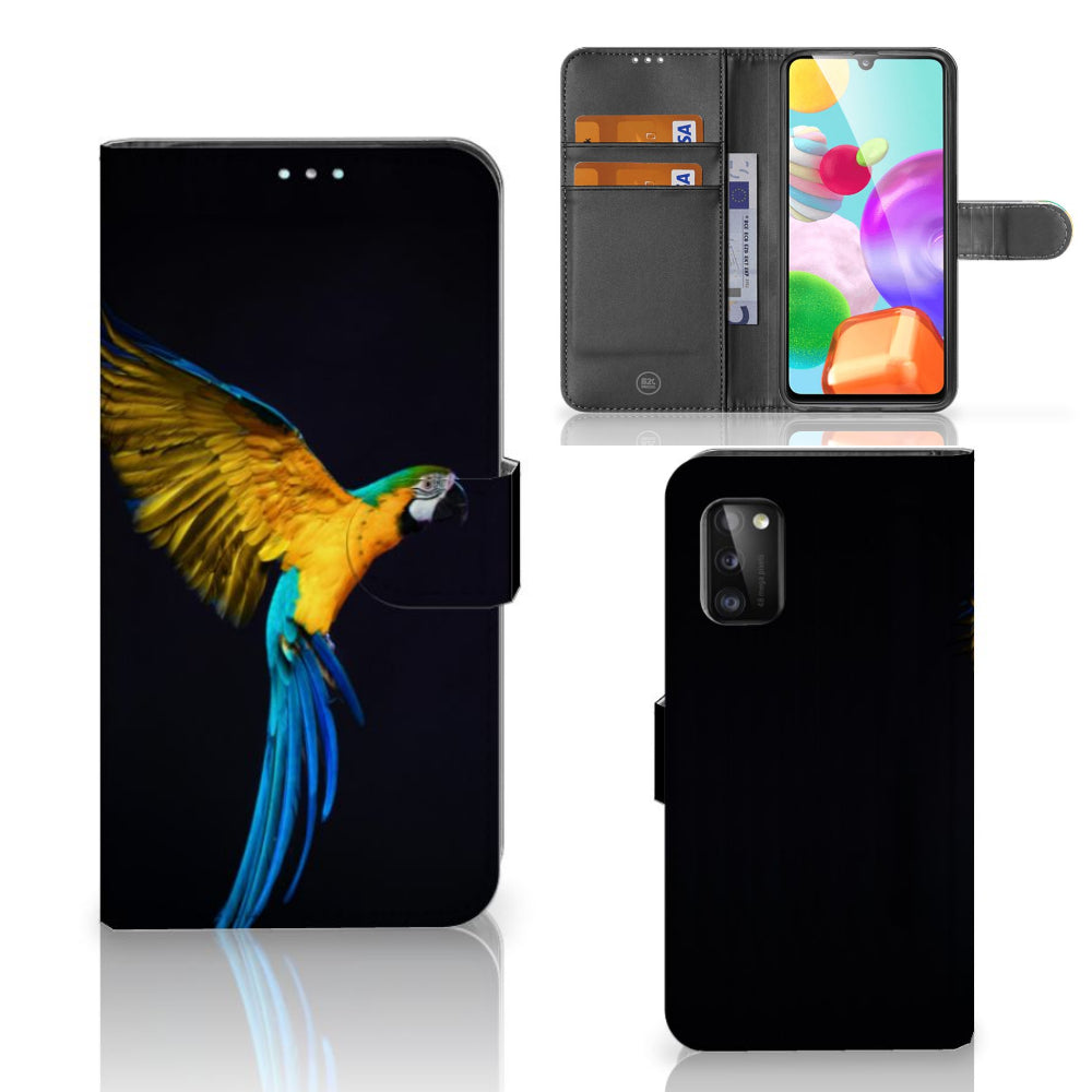 Samsung Galaxy A41 Telefoonhoesje met ruimte voor 3 pasjes Papegaai