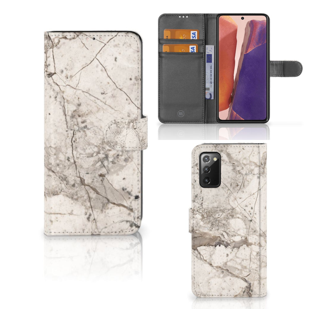 Samsung Galaxy Note 20 Bookcase met pasjes Marmer Beige