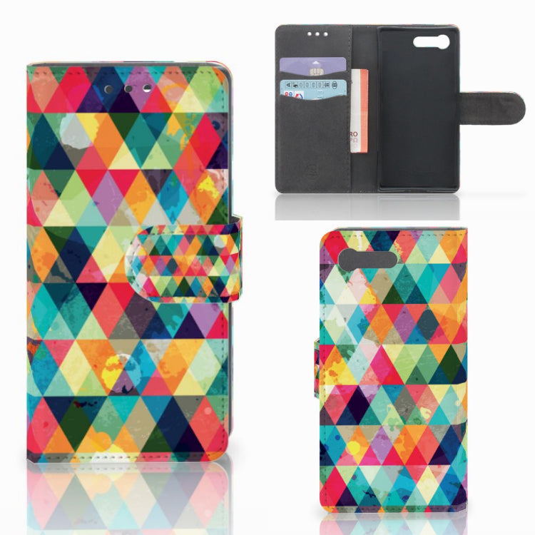 Sony Xperia X Compact Telefoon Hoesje met ruimte voor 3 pasjes Geruit