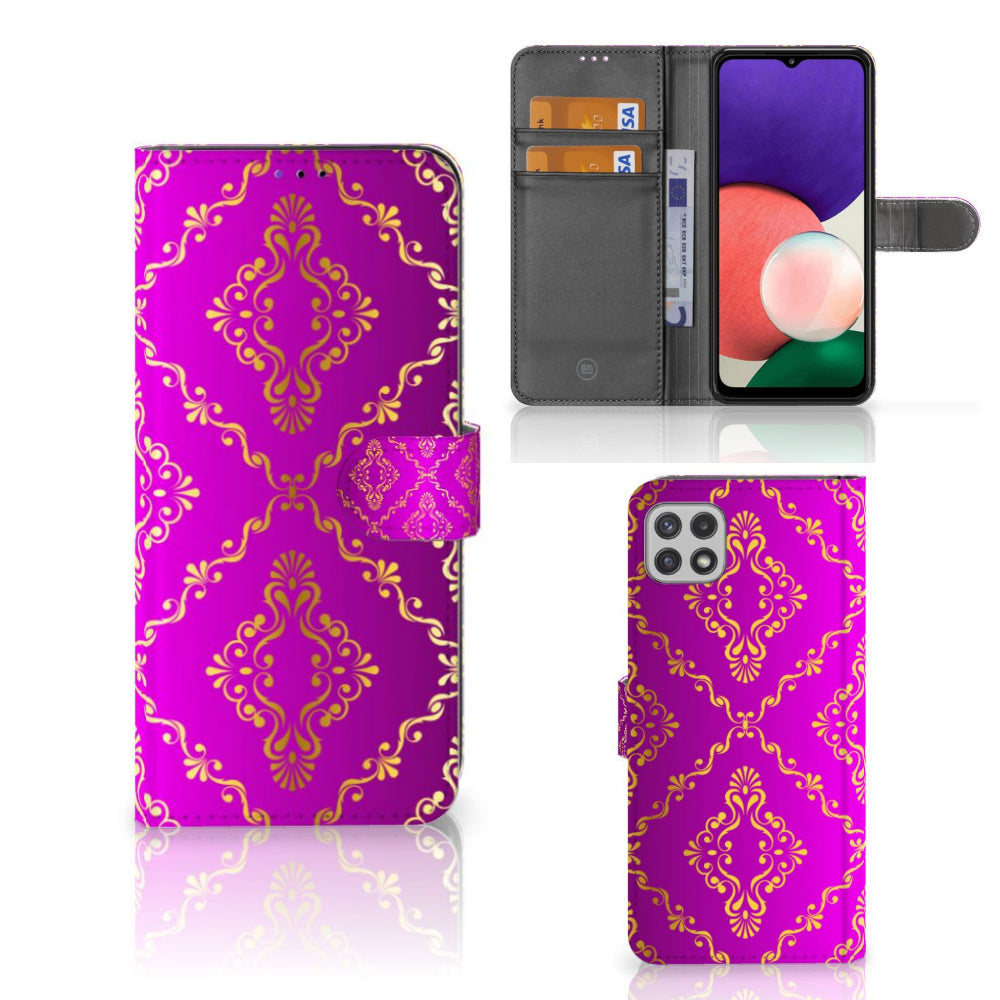 Dit super mooie Wallet Case met Barok Roze achtergrond is een geweldige en duurzame bescherming voor jouw smartphone. De roze kleuren en figuren worden met de grootst mogelijke zorg op het hoesje gezet en op alle zijden van de bookstyle case bedrukt. Dit drukwerk doen we in ons eigen magazijn, zodat we de kwaliteit van het hoesje met roze barok achtergrond kunnen garanderen. Dit roze boekhoesje is op maat gemaakt en heeft verschillende vakjes voor pasjes en briefgeld. Daarnaast is het lipje aan de buitenkant zeer handig. De case sluit hierdoor perfect af. De houder aan de binnenzijde is van tpu en zeer flexibel. Ook het lipje aan de buitenzijde wordt in roze barok bedrukt. Nergens anders tref je een boekhoesje met roze barok achtergrond aan dat zo goed past bij jouw Samsung Galaxy A22 5G.